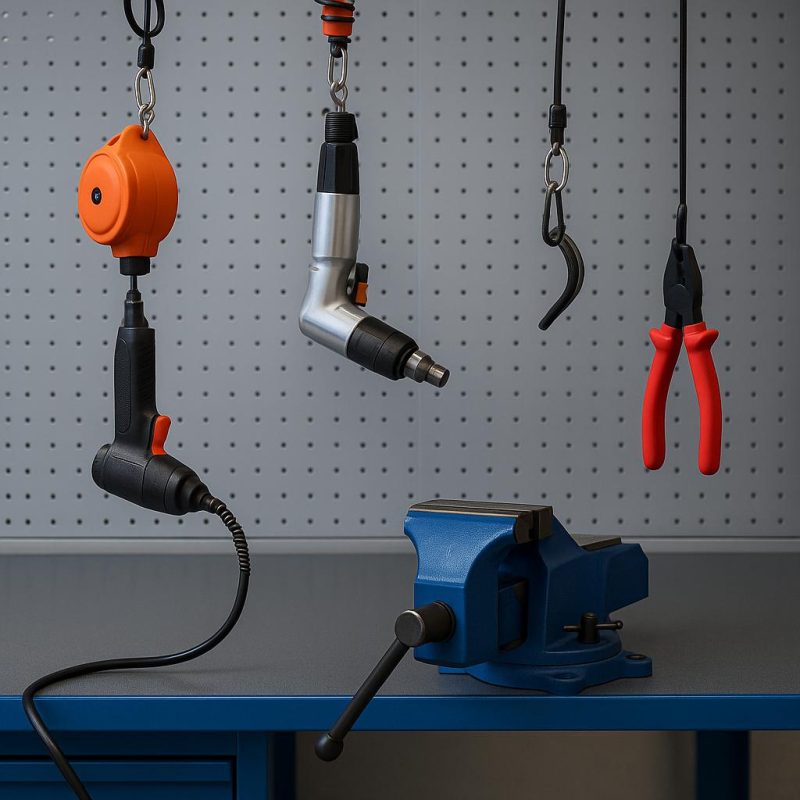 На производствах, где одновременно работает несколько инструментов различного назначения, продуманная система подвесов превращает хаотичное пространство в упорядоченную рабочую зону.
