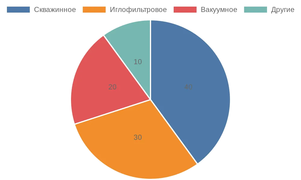 | Скважинное | Глубокие котлованы у дамб | Высокая производительность | Необходимость бурения |