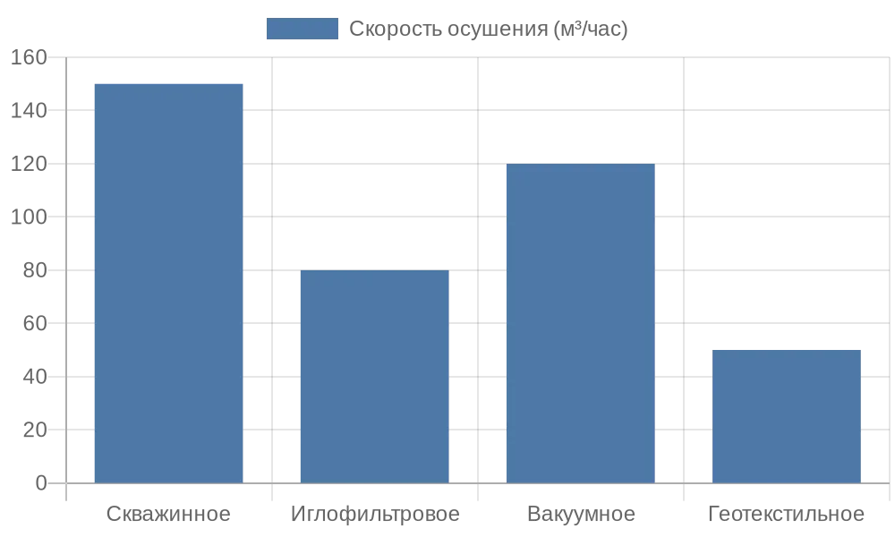 Инновационные методы, такие как вакуумное осушение, ускоряют процесс на 15–25% по сравнению с традиционными. Они особенно полезны для плотных пород, где стандартные насосы теряют эффективность. Выбор подхода зависит от предварительных расчетов, включая моделирование потока воды.